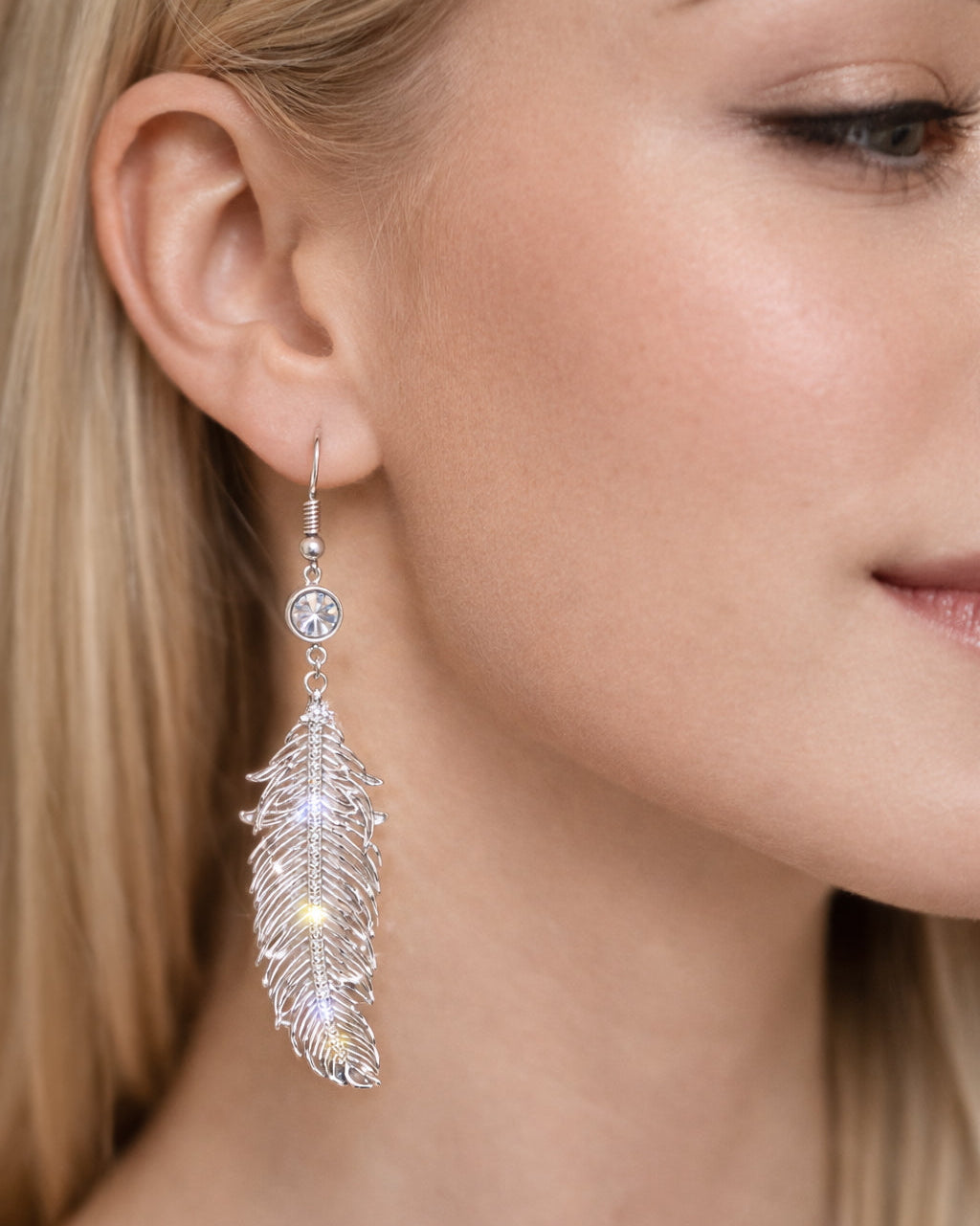 This lightweight pair of silver feather earrings are sparkling with love and light. They are a reminder that you are loved, supported, and divinely guided. Lightweight as a feather, this pair of symbolic earrings is beautifully crafted in 925 sterling silver with sparkling little crystals.